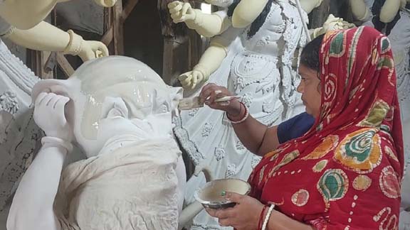 রঙ-তুলির আঁচড়ে সাজছে দেবী দুর্গা, ব্যস্ত সময় কাটছে শিল্পীদের